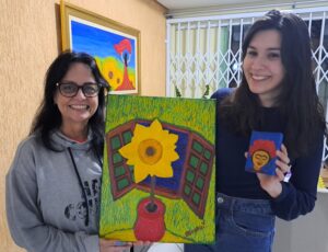 - GirassolA alegria de entregar um girassol para outro girassol: Nathalia! Gratidão imensa por pintar mais um girassol e ver minha humilde arte sendo adquirida por pessoas tão especiais! Ainda teve uma “Fridinha” para alegrar ainda mais este momento!